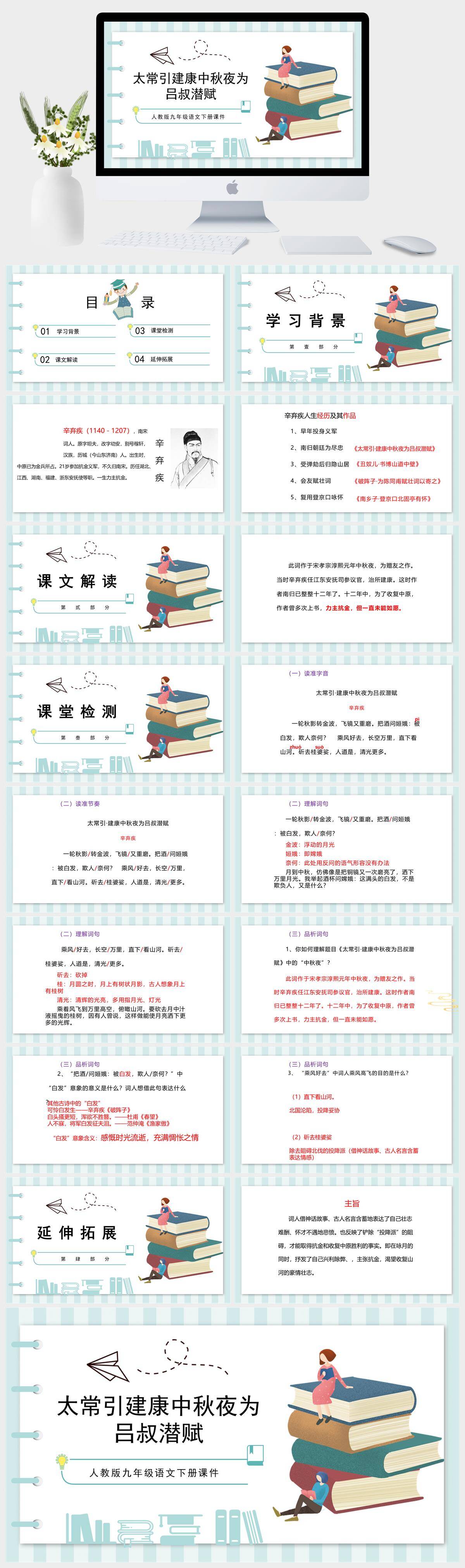 HKYW9164-人教版九年级语文下册课件太常引·建康中秋夜为吕叔潜赋PPT模板成品课件PPT