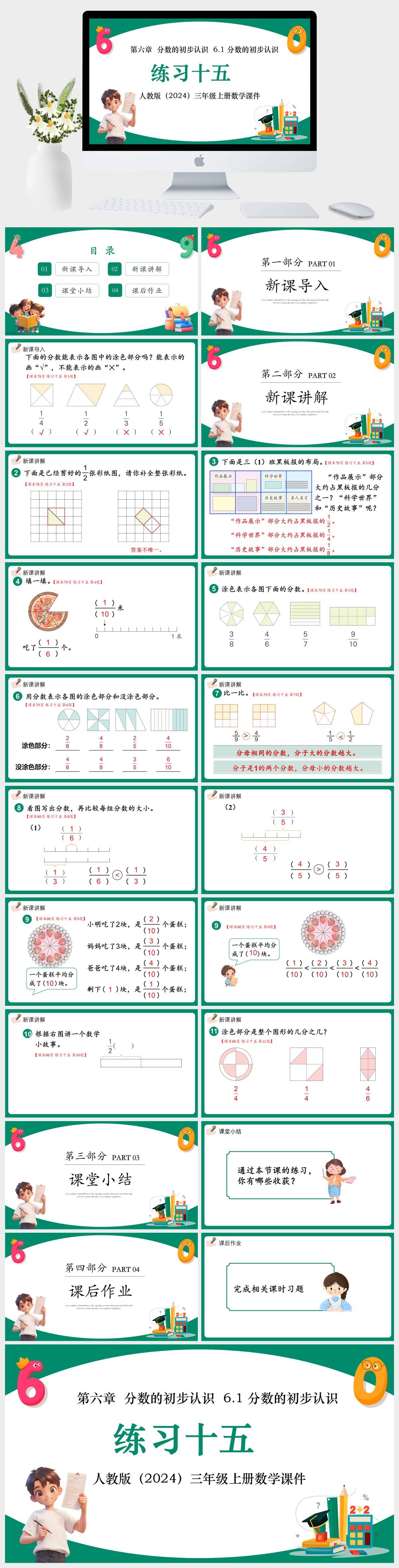HKSX4-人教版(2024)三年级上册数学第六章 分数的初步认识 6.1 分数的初步认识 练习十五课件PPT模板
