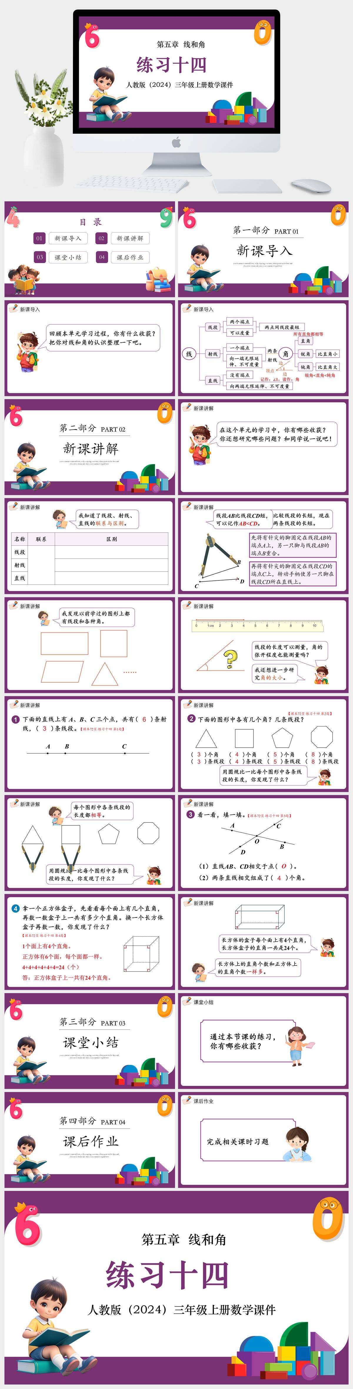 HKSX6-人教版(2024)三年级上册数学第五章 线和角 练习十四课件PPT模板