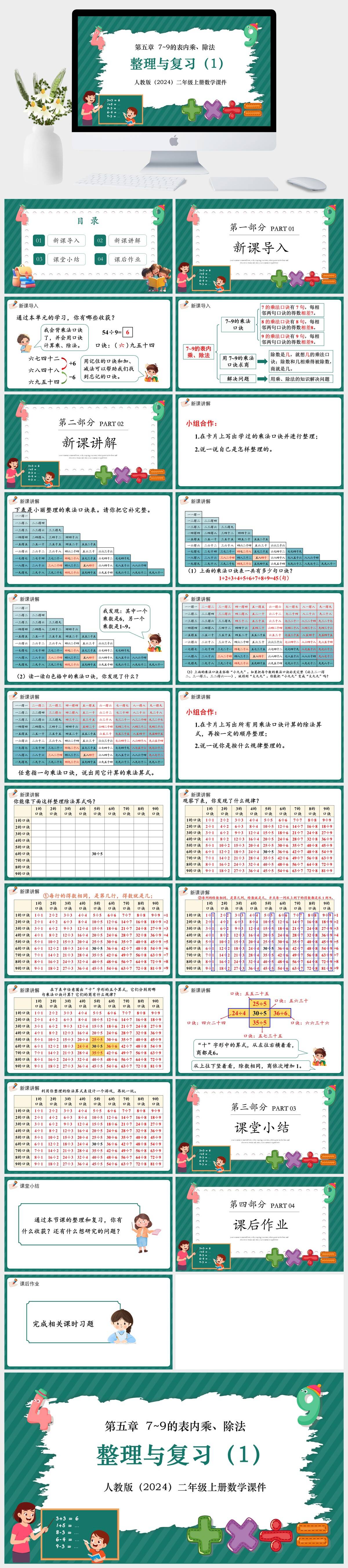 HKSX8-人教版(2024)二年级上册数学第五章 7~9的表内乘、除法 整理与复习(1)课件PPT模板