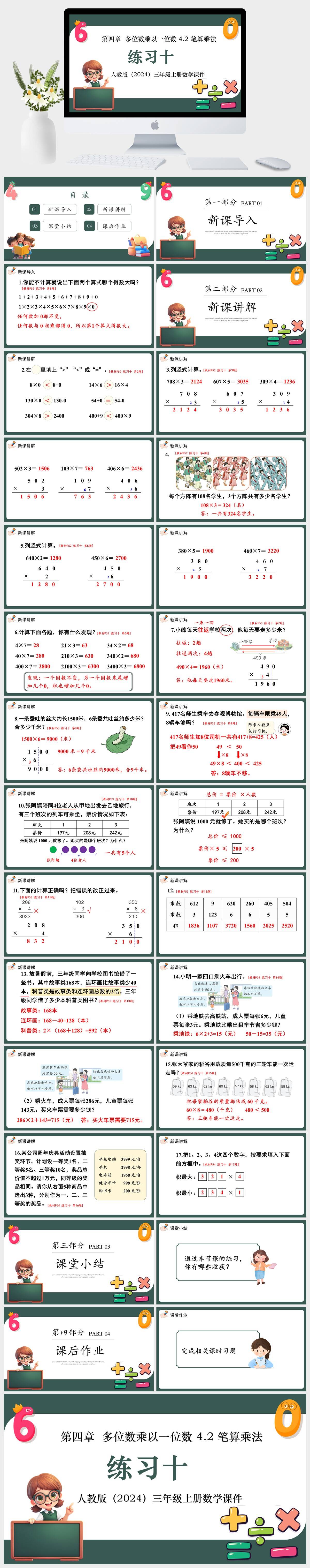 HKSX9-人教版(2024)三年级上册数学第四章 多位数乘以一位数 4.2 笔算乘法 练习十课件PPT模板