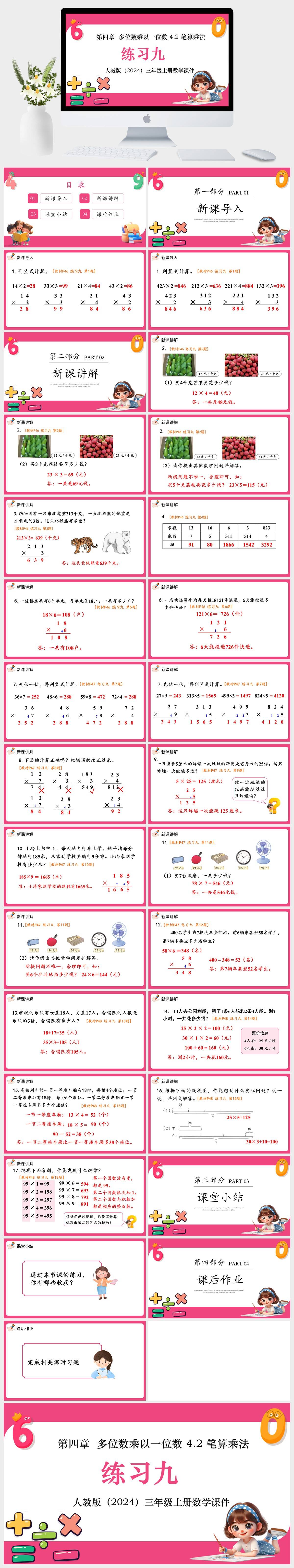 HKSX10-人教版(2024)三年级上册数学第四章 多位数乘以一位数 4.2 笔算乘法 练习九课件PPT模板