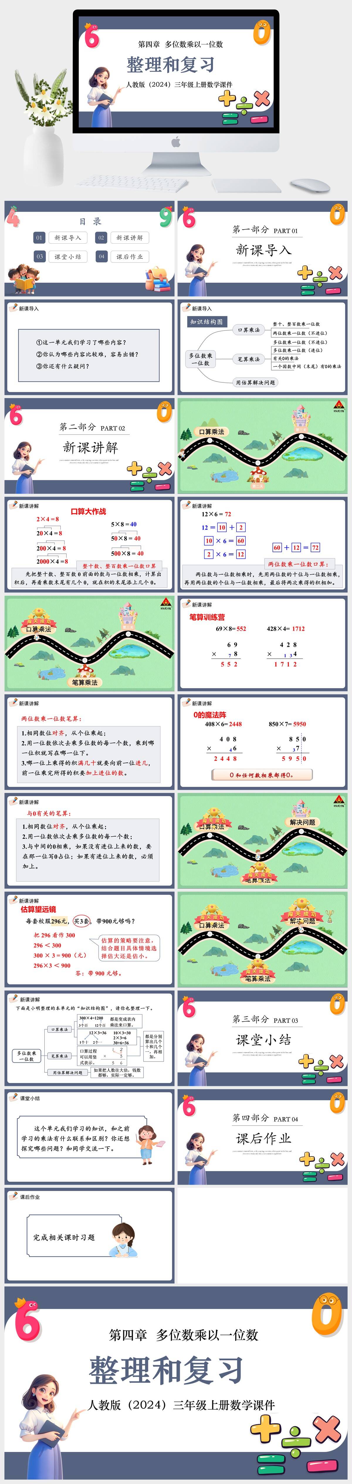 HKSX12-人教版(2024)三年级上册数学第四章 多位数乘以一位数 整理和复习课件PPT模板