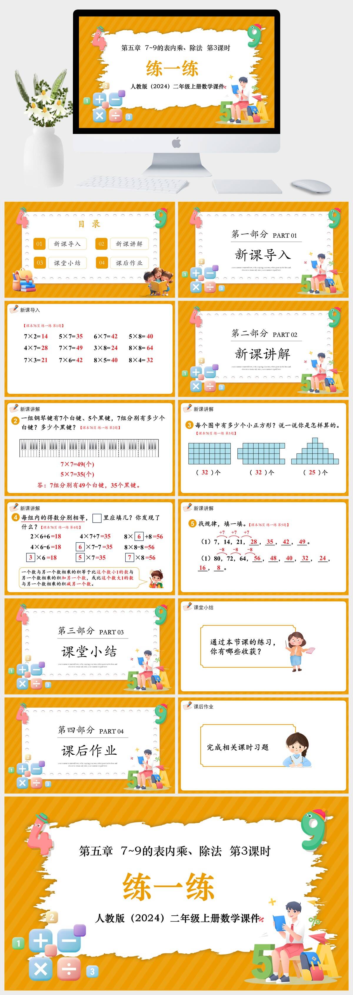 HKSX21-人教版(2024)二年级上册数学第五章 7~9的表内乘、除法 第3课时 练一练课件PPT模板
