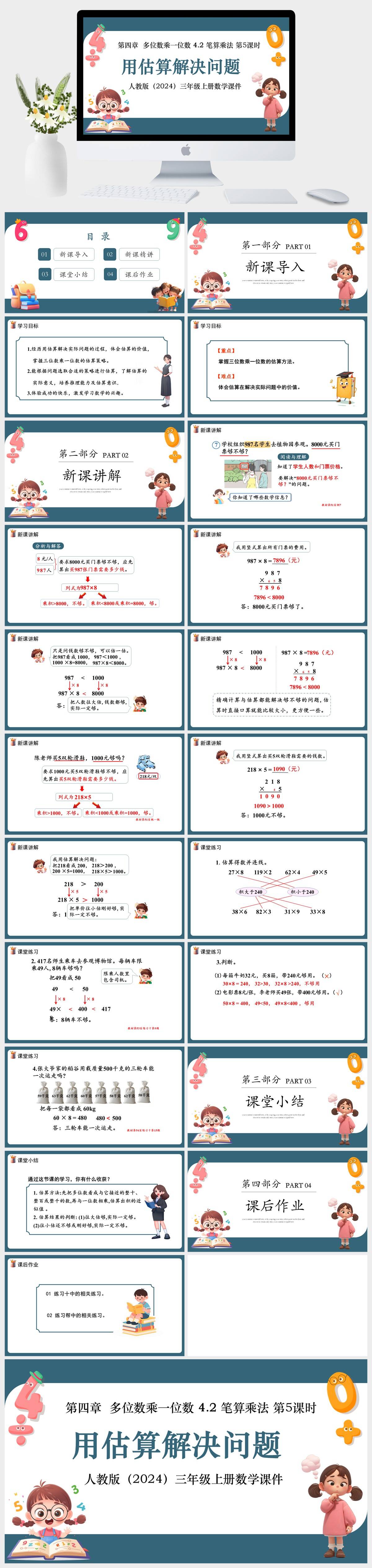 HKSX43-人教版(2024)三年级上册数学 第四章 多位数乘一位数 4.2 笔算乘法 第5课时用估算解决问题课件PPT模板