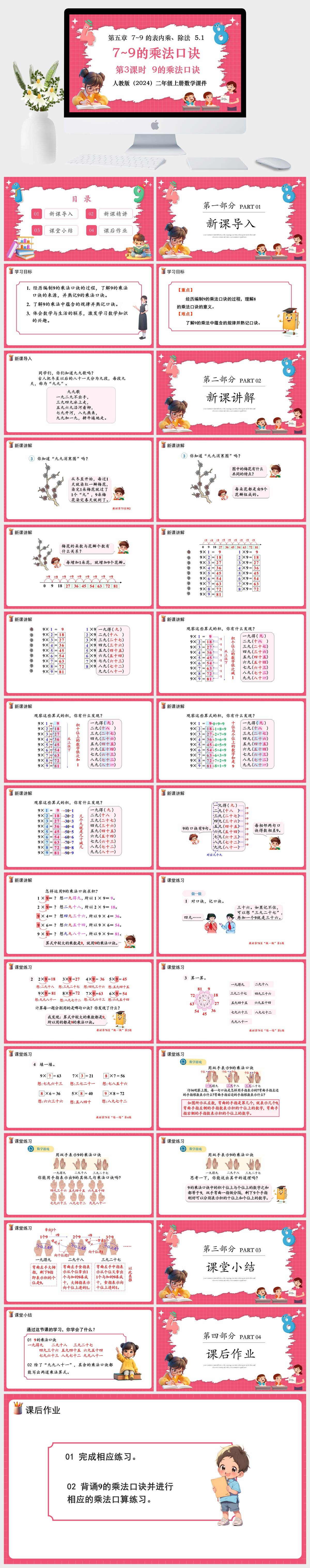 HKSX61-人教版(2024)二年级上册数学第五章 7~9 的表内乘、除法 5.1 7~9的乘法口诀第3课时 9的乘法口诀课件PPT模板