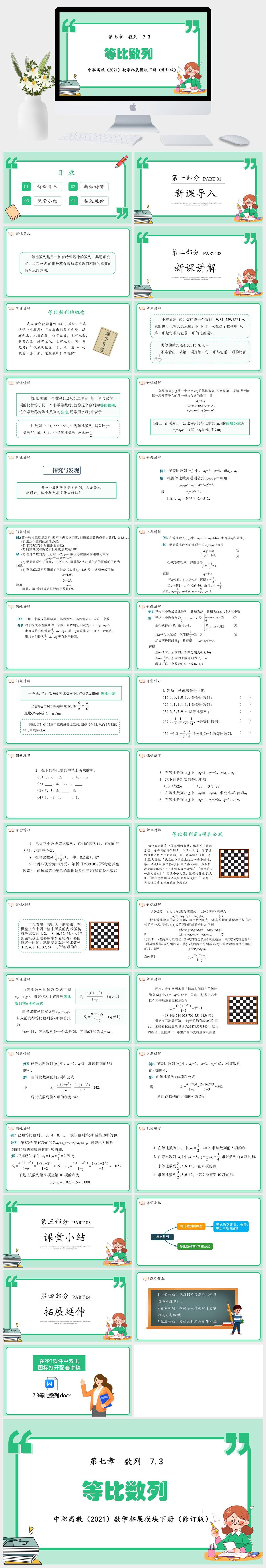 HKSX7526-中职高教(2021)数学拓展模块下册(修订版)第七章 数列 7.3 等比数列课件PPT模板