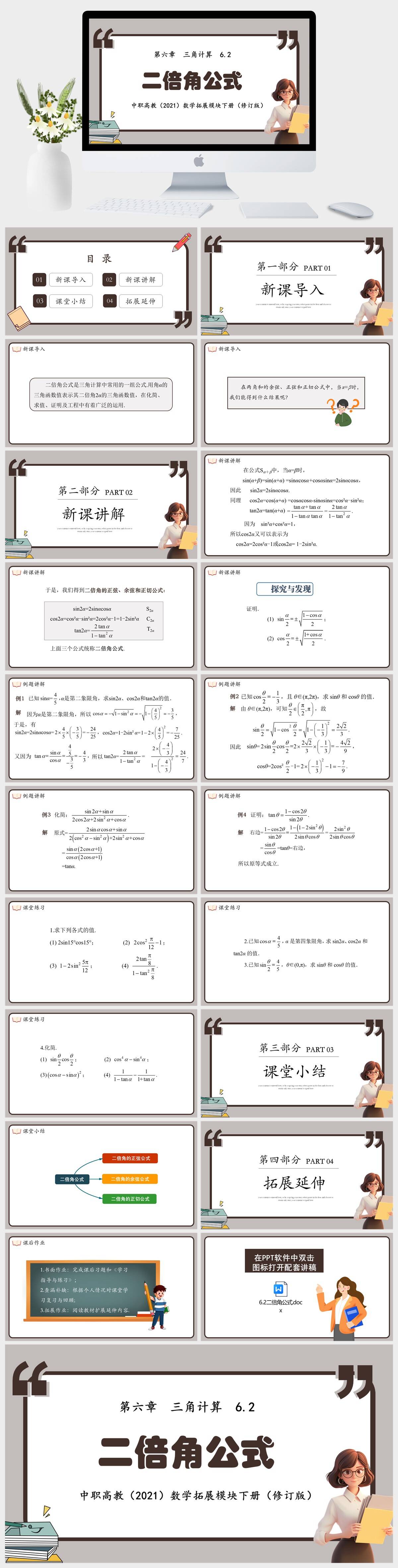 HKSX7537-中职高教(2021)数学拓展模块下册(修订版) 第六章 三角计算 6.2二倍角公式课件PPT模板