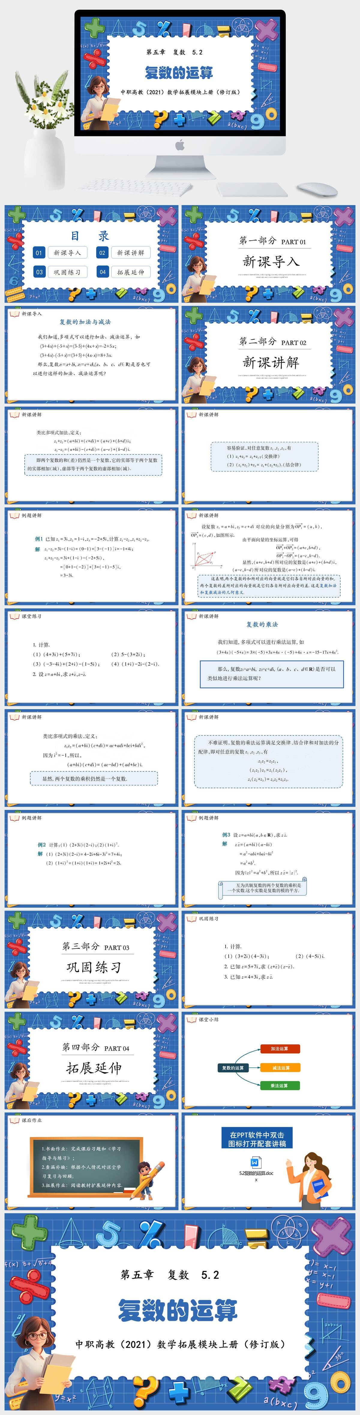 HKSX7540-中职高教(2021)数学拓展模块上册(修订版) 第五章 复数 5.2复数的运算课件PPT模板
