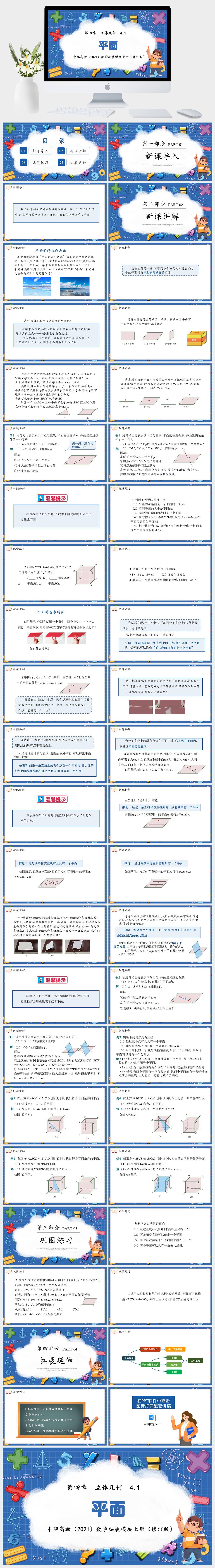 HKSX7545-中职高教(2021)数学拓展模块上册(修订版) 第四章 立体几何 4.1平面课件PPT模板