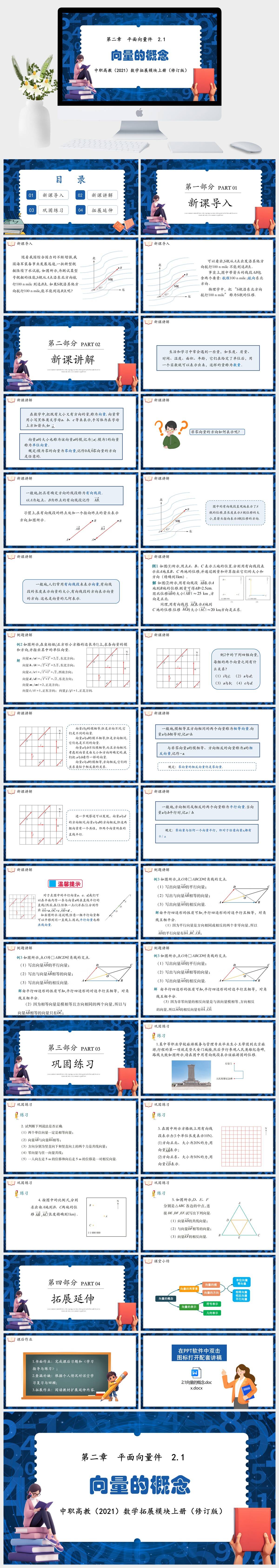 HKSX7552-中职高教(2021)数学拓展模块上册(修订版) 第二章 平面向量件 2.1向量的概念课件PPT模板