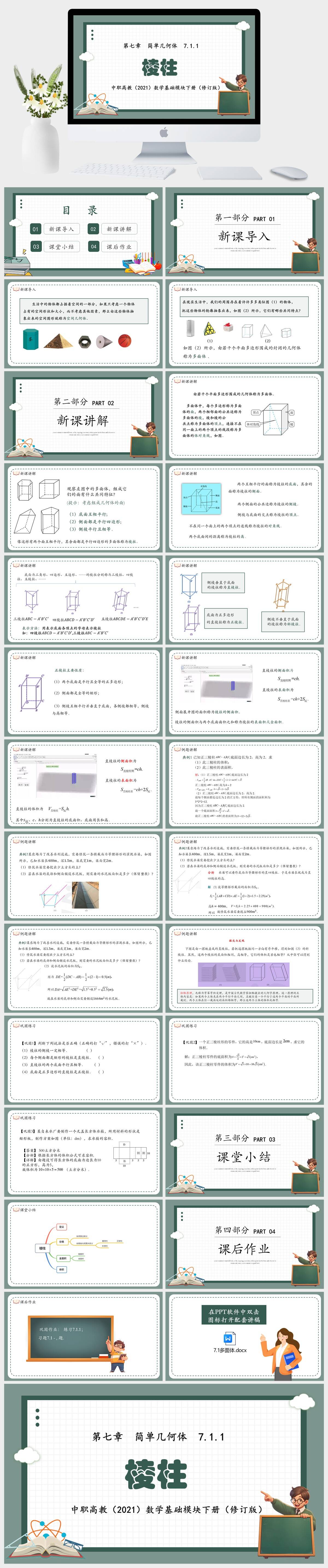 HKSX7555-中职高教(2021)数学基础模块下册(修订版)第七章 简单几何体 7.1.1棱柱课件PPT模板