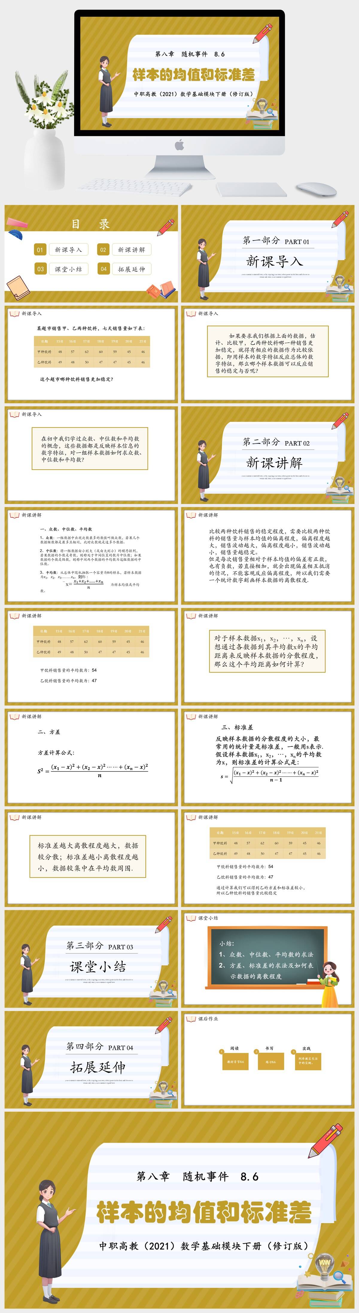 HKSX7556-中职高教(2021)数学基础模块下册(修订版) 第八章 随机事件 8.6样本的均值和标准差课件PPT模板