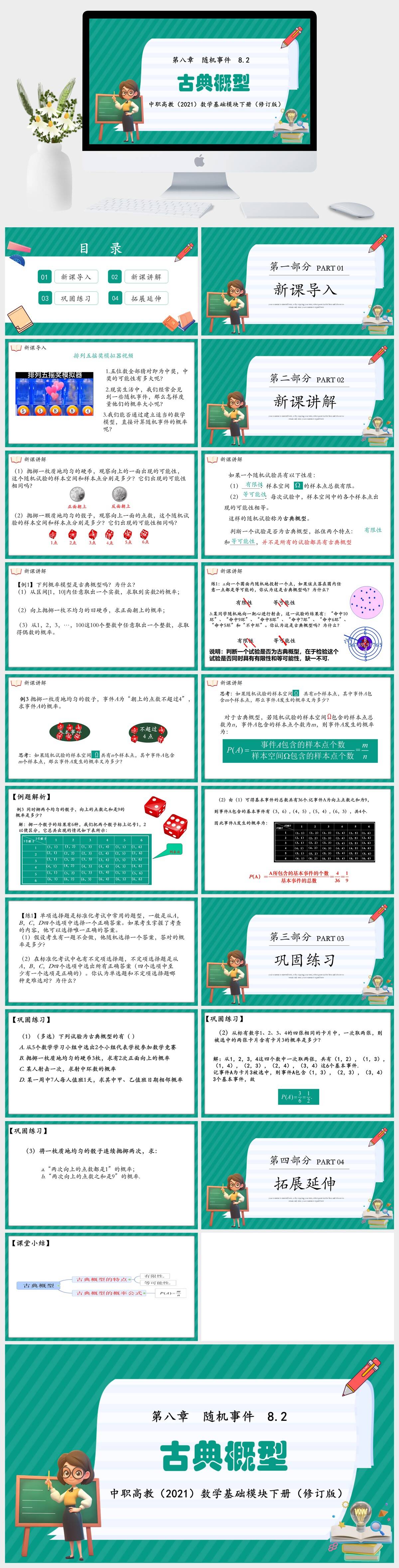 HKSX7562-中职高教(2021)数学基础模块下册(修订版) 第八章 随机事件 8.2古典概型课件PPT模板