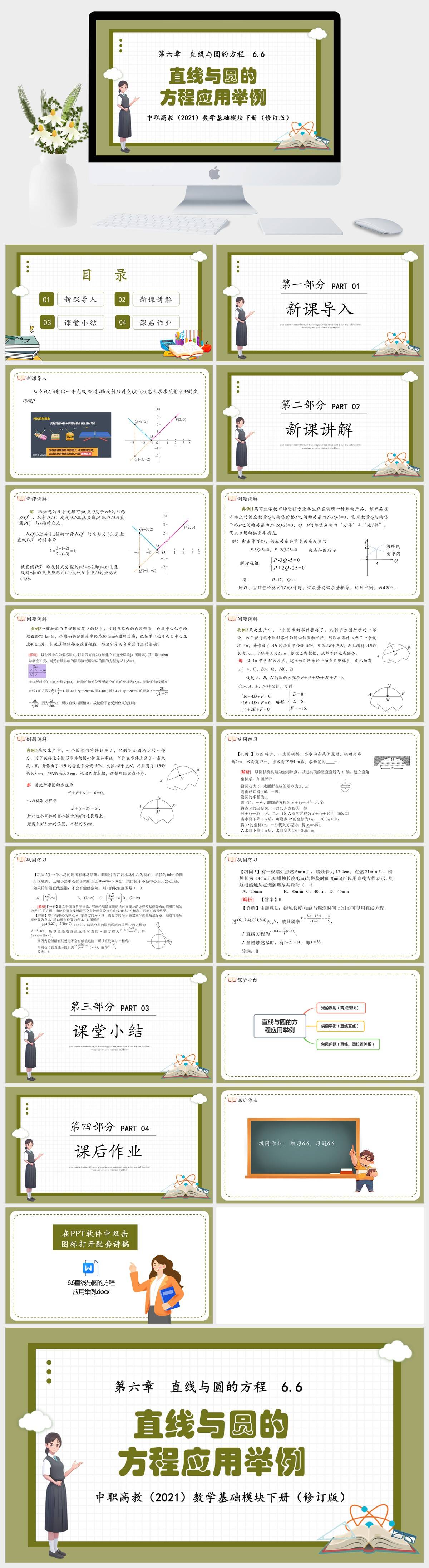 HKSX7571-中职高教(2021)数学基础模块下册(修订版)第六章 直线与圆的方程 6.6直线与圆的方程应用举例课件PPT模板
