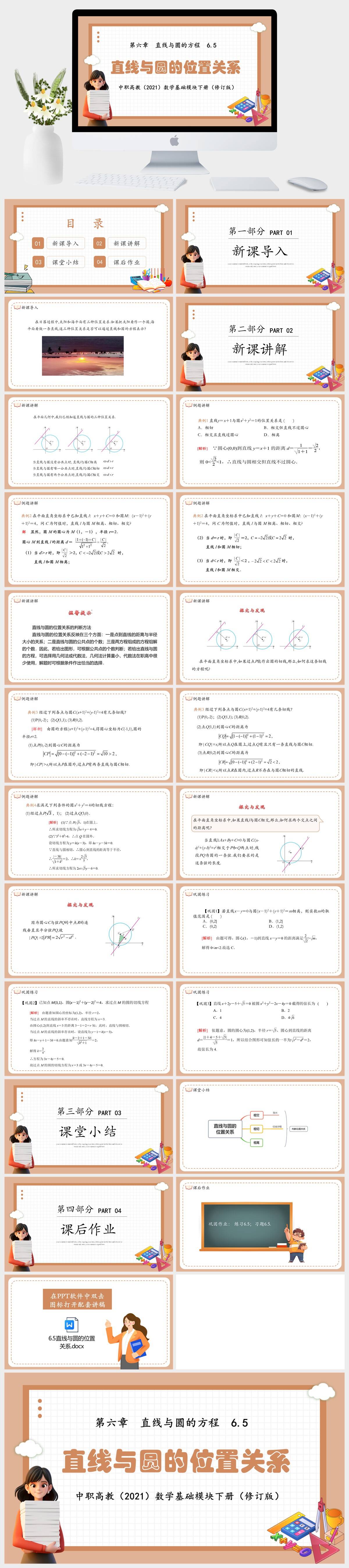 HKSX7572-中职高教(2021)数学基础模块下册(修订版)第六章 直线与圆的方程 6.5直线与圆的位置关系课件PPT模板