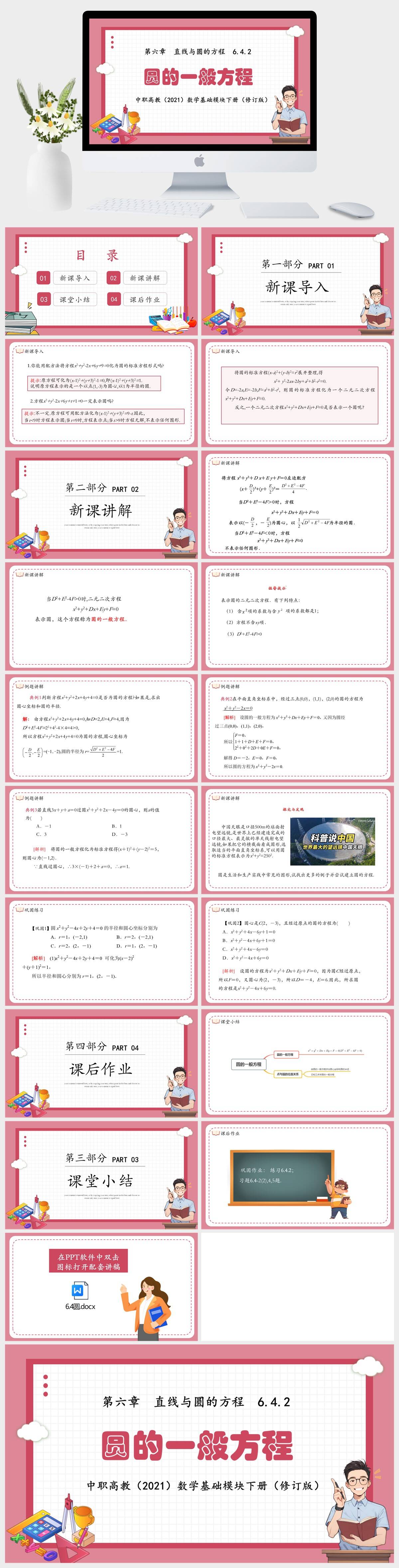 HKSX7574-中职高教(2021)数学基础模块下册(修订版)第六章 直线与圆的方程 6.4.2圆的一般方程课件PPT模板