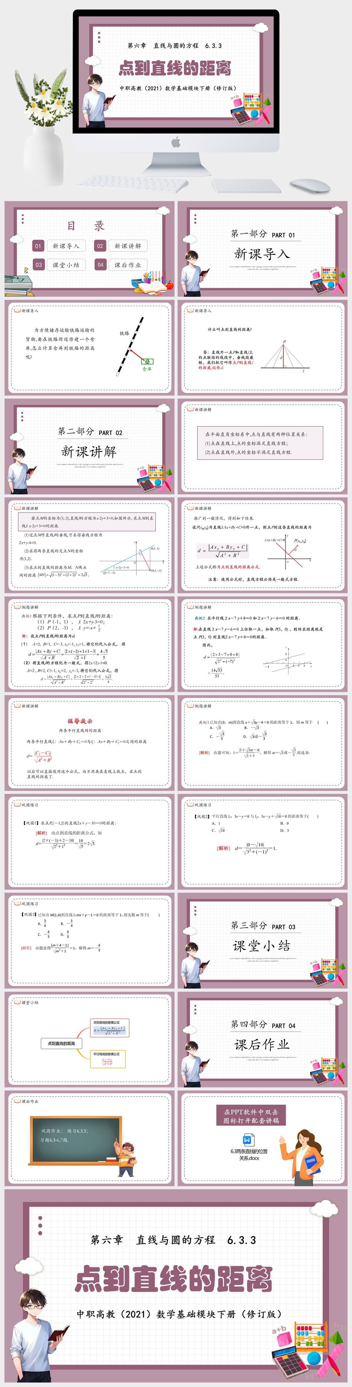 HKSX7576-中职高教(2021)数学基础模块下册(修订版)第六章 直线与圆的方程 6.3.3点到直线的距离课件PPT模板