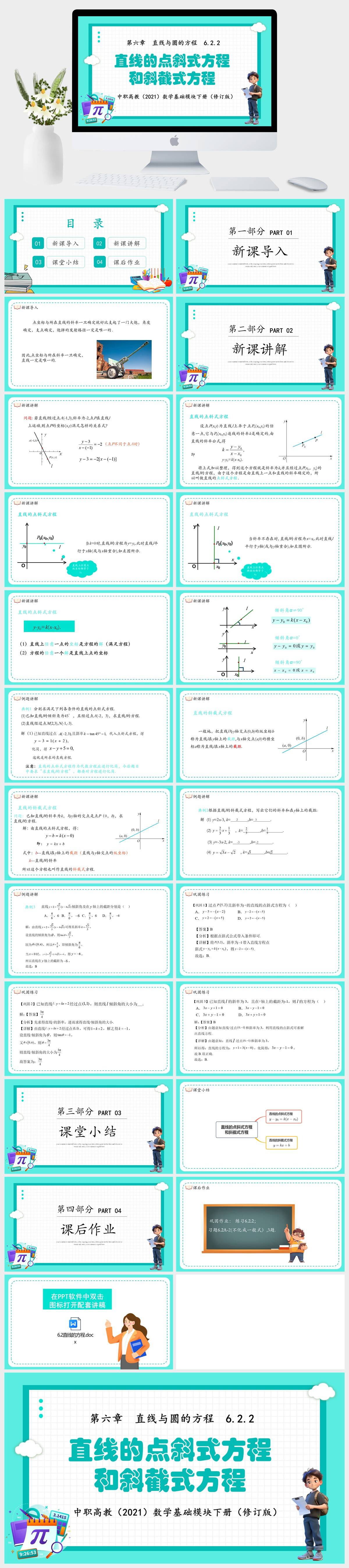 HKSX7579-中职高教(2021)数学基础模块下册(修订版)第六章 直线与圆的方程 6.2.2直线的点斜式方程和斜截式方程课件PPT模板