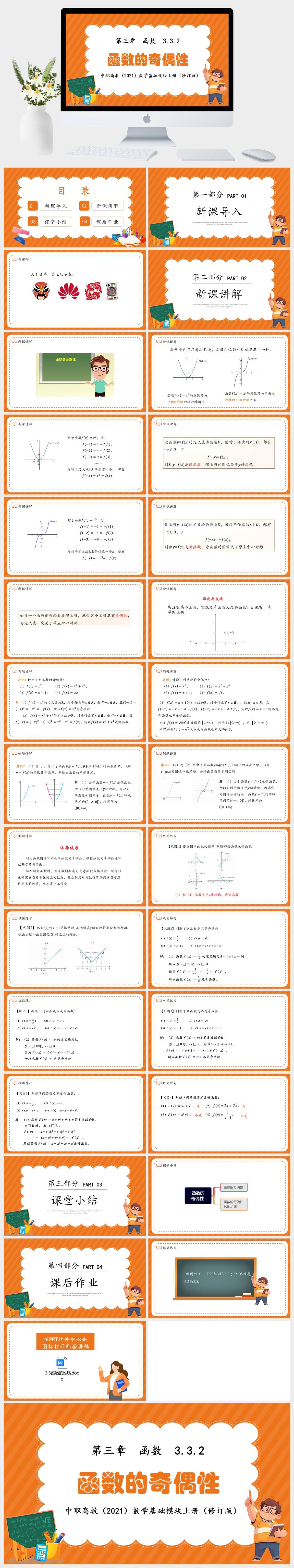 HKSX7604-中职高教(2021)数学基础模块上册(修订版)第三章 函数 3.3.2函数的奇偶性课件PPT模板