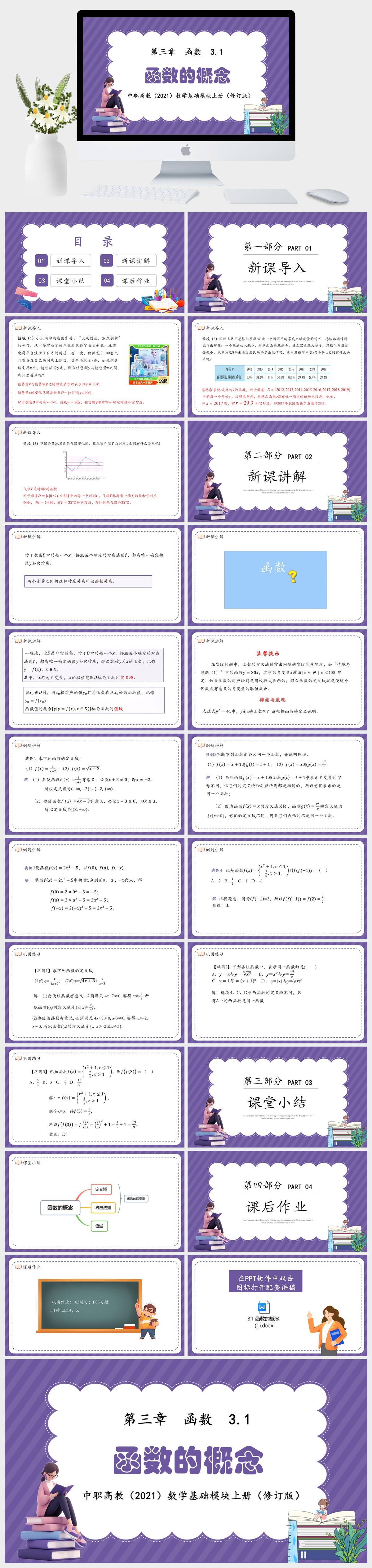 HKSX7607-中职高教(2021)数学基础模块上册(修订版)第三章 函数 3.1函数的概念课件PPT模板