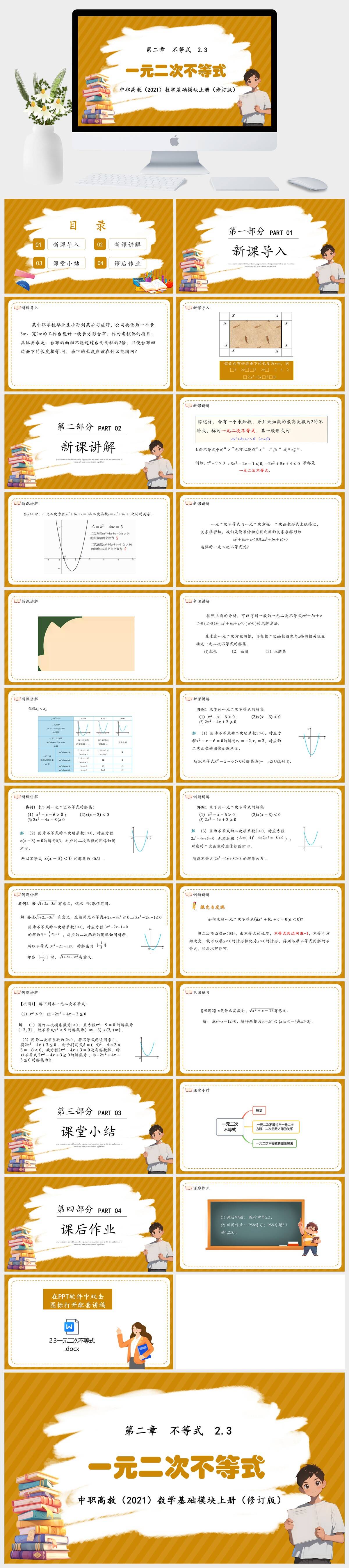 HKSX7611-中职高教(2021)数学基础模块上册(修订版)第二章 不等式 2.3一元二次不等式课件PPT模板