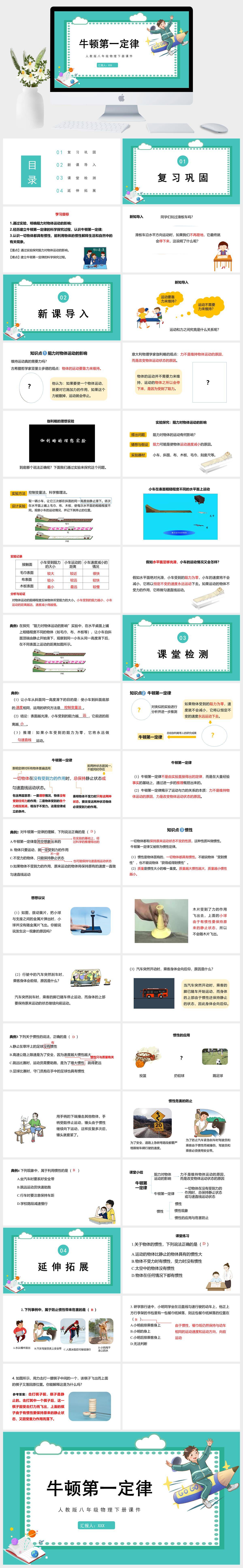 HKWL1046-人教版八年级物理下册课件牛顿第一定律PPT模板成品课件