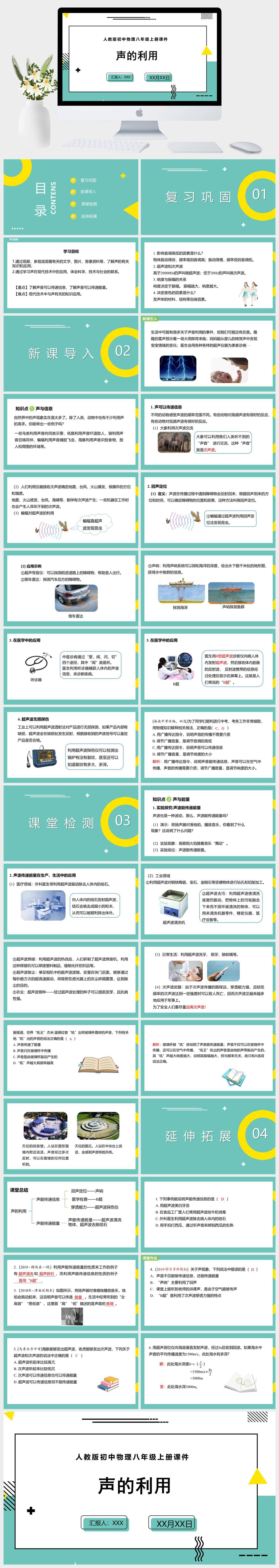 HKWL1076-人教版初中物理八年级上册课件第2章第3节声的利用PPT模板成品课件