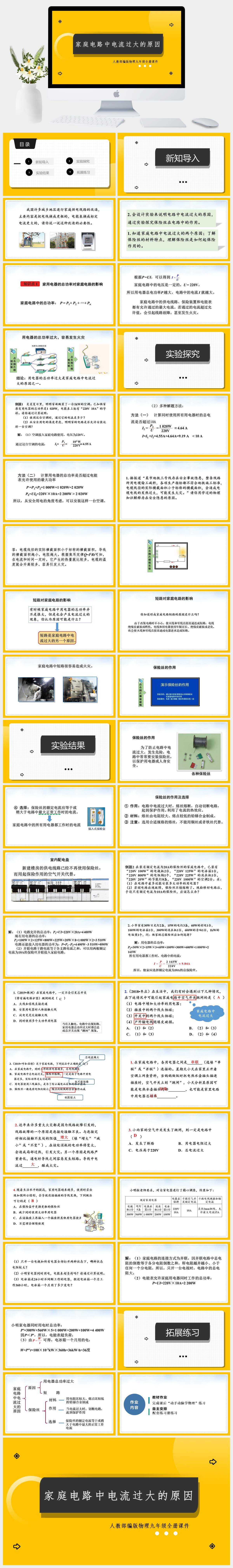 HKWL1204-初中物理人教版九年级全册《家庭电路中电流过大的原因》课件PPT模板成品课件