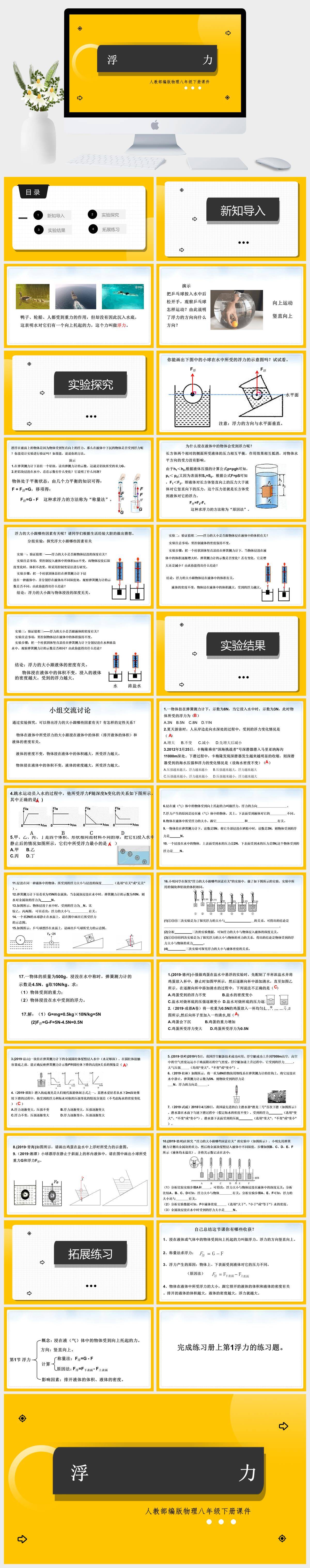 HKWL1268-初中物理人教版八年级下册《浮力》课件PPT模板成品课件