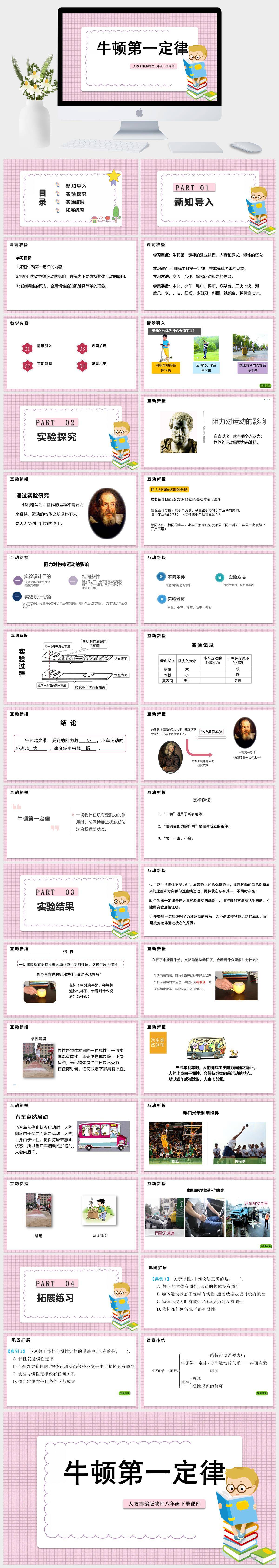 HKWL1282-初中物理人教版八年级下册《牛顿第一定律》课件PPT模板成品课件