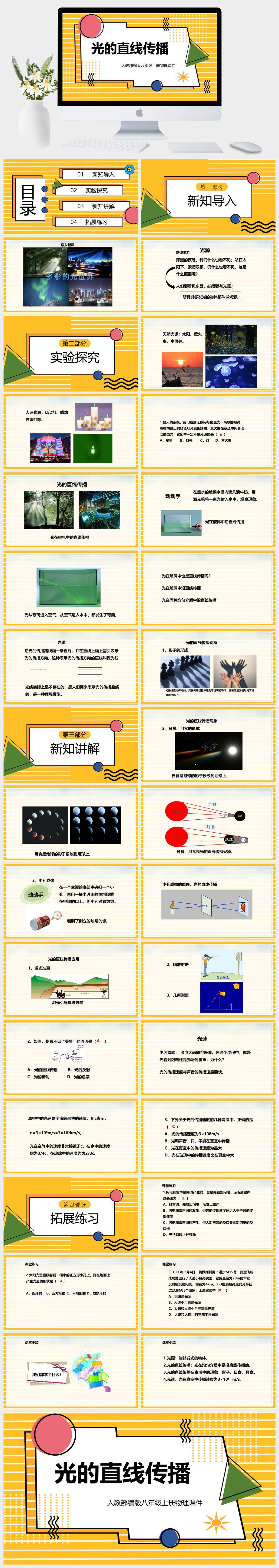 HKWL1348-初中物理人教版八年级上册《光的直线传播》课件PPT模板成品课件