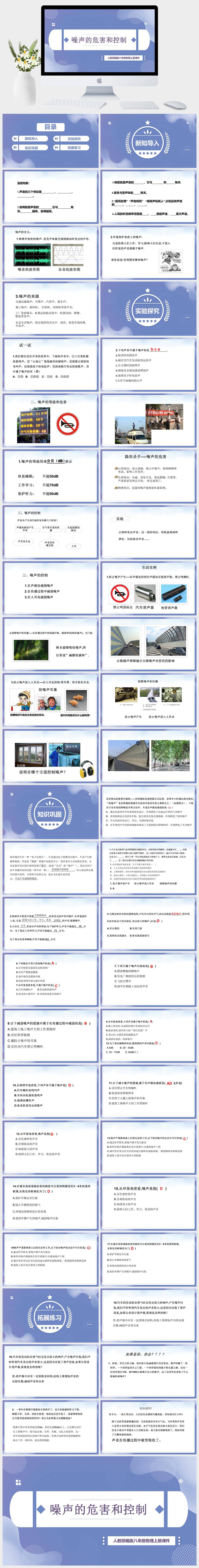HKWL1363-初中物理人教版八年级上册《噪声的危害和控制》课件PPT模板成品课件