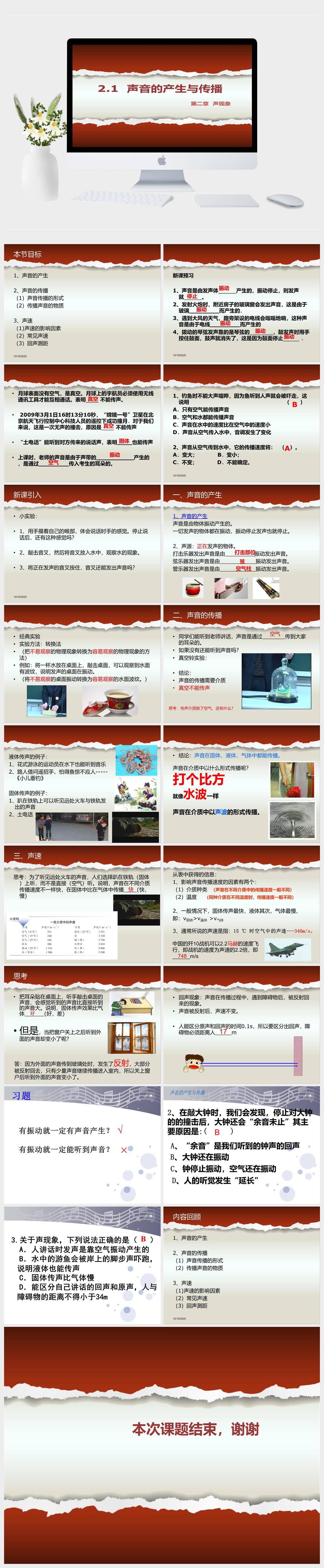 HKWL1678-人教版八年级物理上册声音的产生与传播PPT模板成品课件