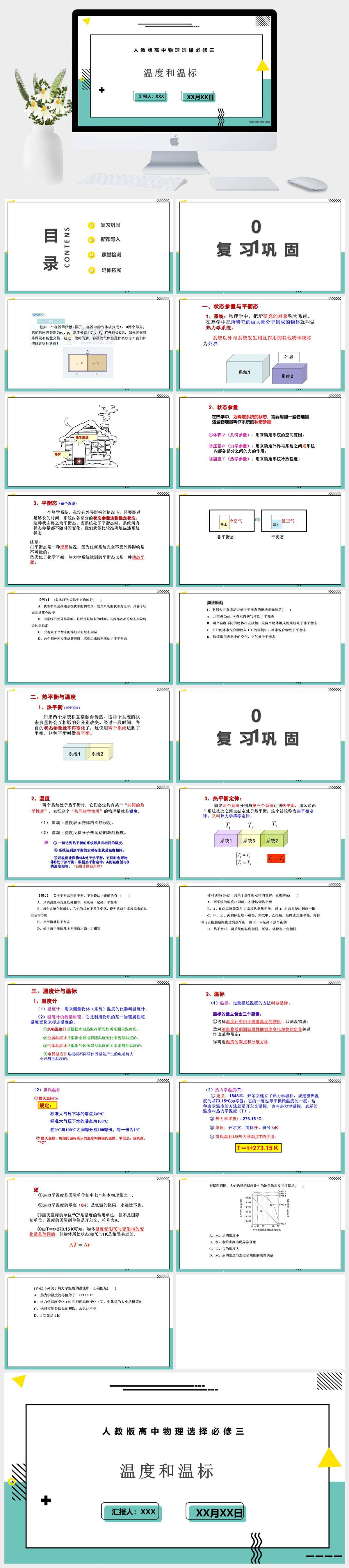HKWL1948-人教版高中物理选择必修三温度和温标PPT模板成品课件