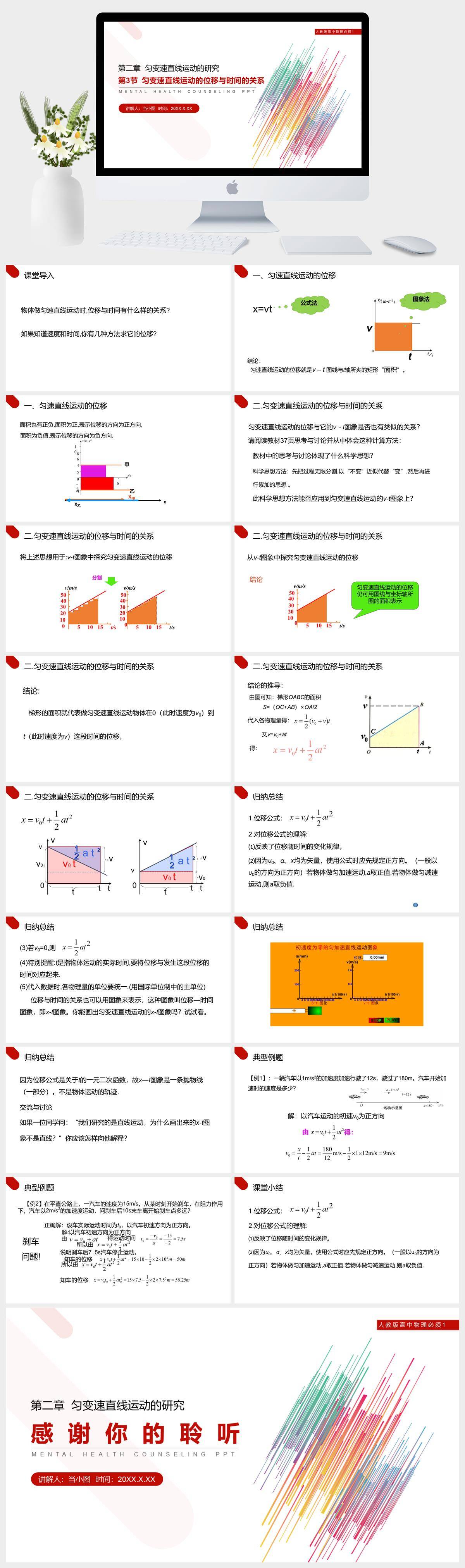 HKWL2300-人教版高中物理必修1《匀变速直线运动的位移与时间的关系》PPT课件成品课件