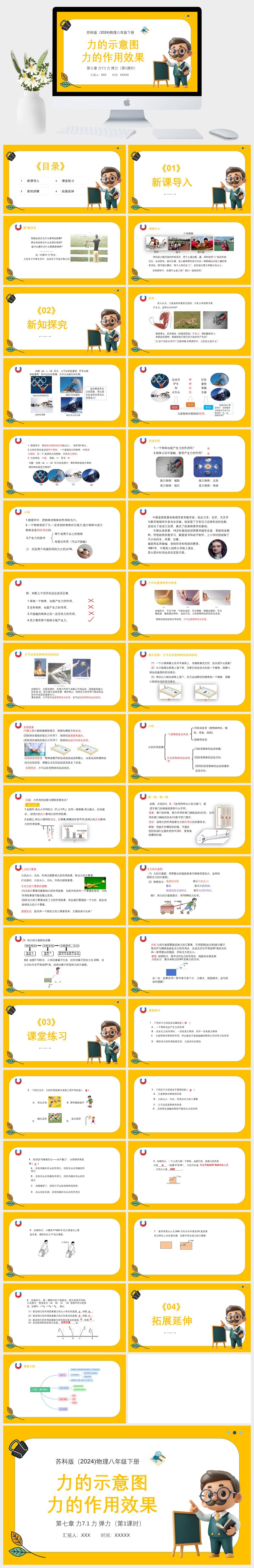 HKWL2340-苏科版(2024)物理八年级下册第七章 力7.1 力 弹力(第1课时)力的示意图+力的作用效果PPT模板成品课件