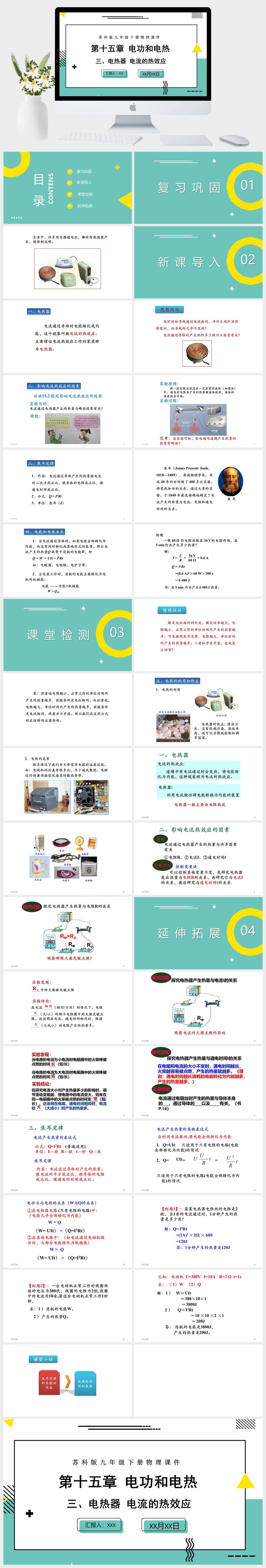 HKWL2374-苏科版九年级下册物理课件第十五章电功和电热三、电热器 电流的热效应PPT模板成品课件