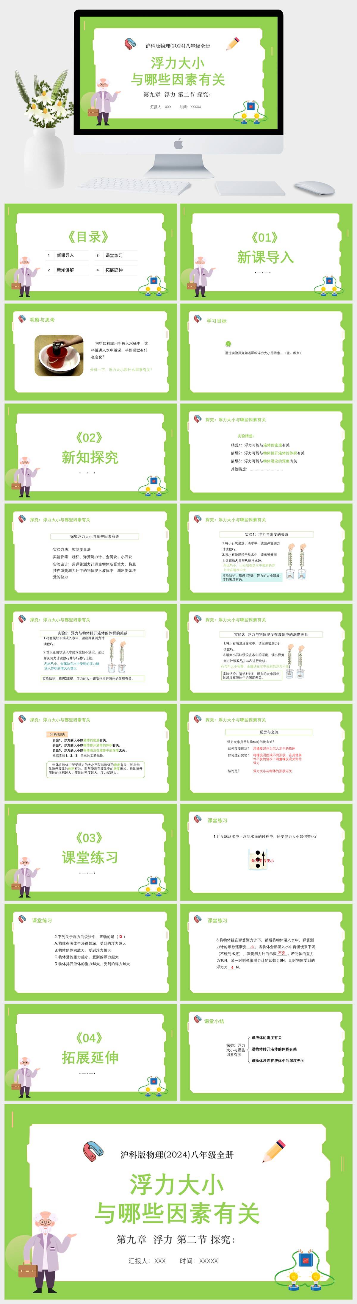 HKWL2586-沪科版物理(2024)八年级全册第九章 浮力 第二节 探究:浮力大小与哪些因素有关PPT模板成品课件