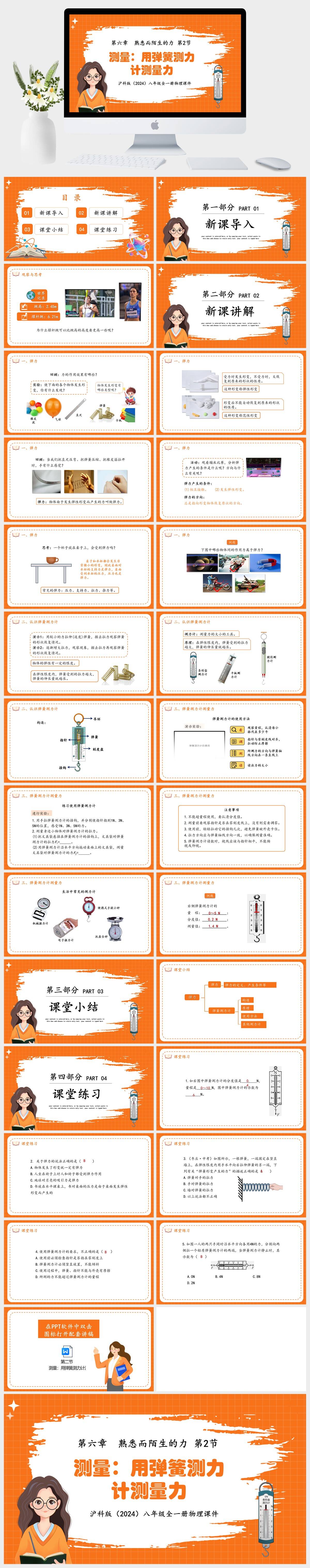 HKWL2597-沪科版(2024)八年级全一册物理第六章 熟悉而陌生的力 第2节测量:用弹簧测力计测量力课件PPT模板成品课件