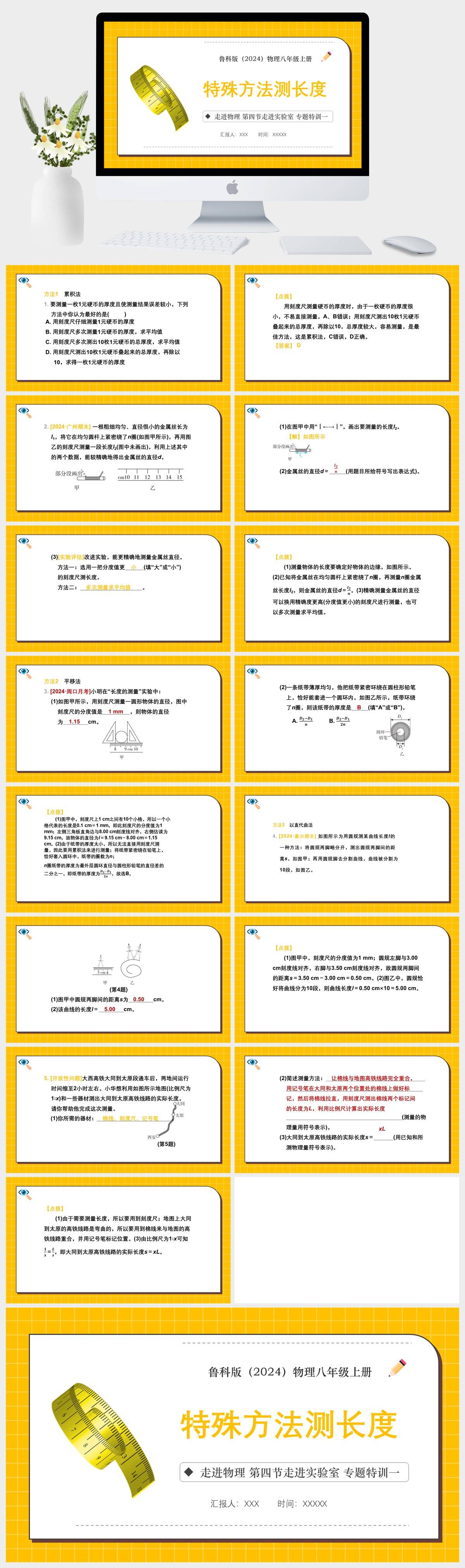HKWL2676-鲁科版(2024)物理八年级上册走进物理 第四节 走进实验室 专题特训一 特殊方法测长度PPT模板成品课件