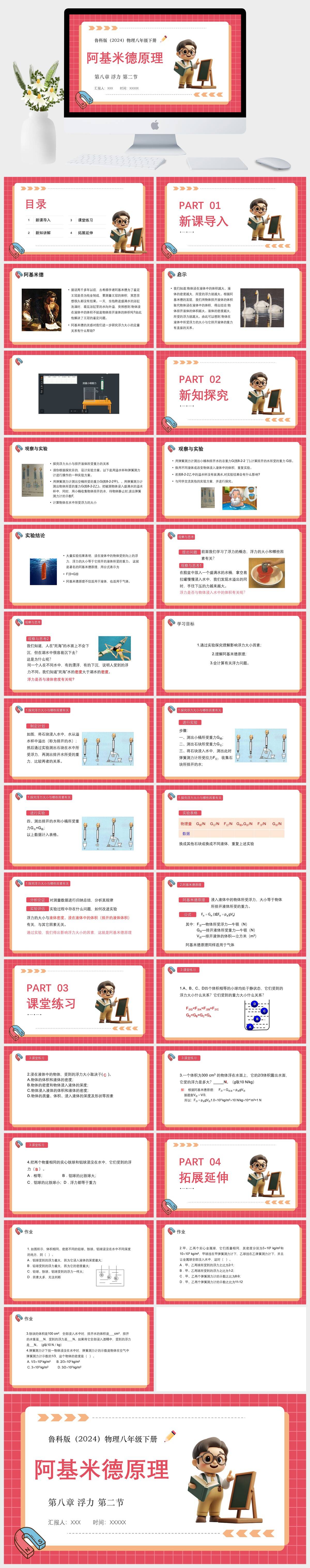 HKWL2685-鲁科版(2024)物理八年级下册第八章 浮力 第二节阿基米德原理PPT模板成品课件