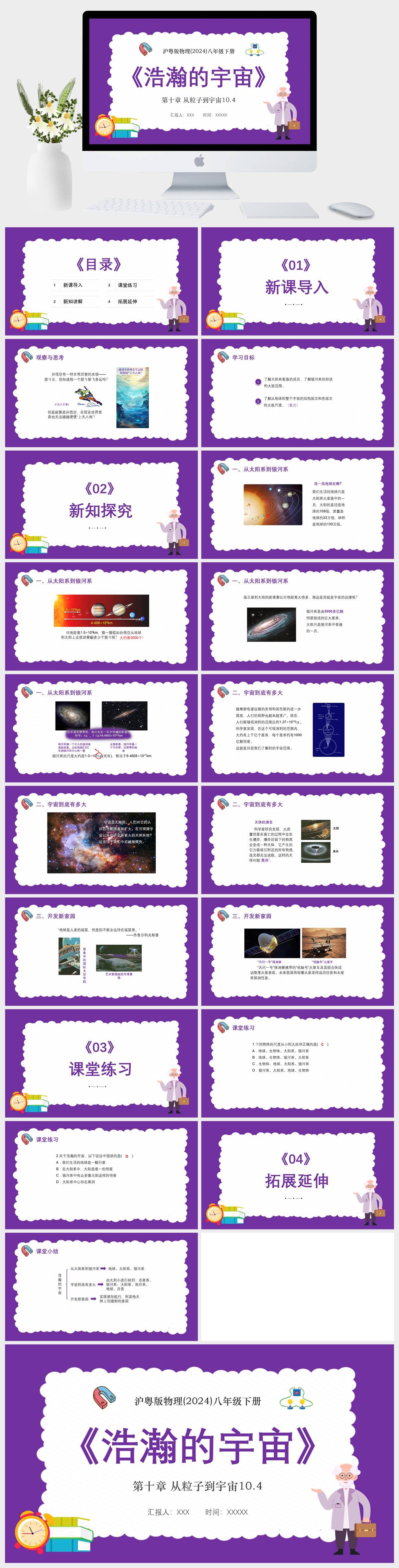 HKWL2913-沪粤版物理(2024)八年级下册第十章 从粒子到宇宙10.4 浩瀚的宇宙PPT模板成品课件