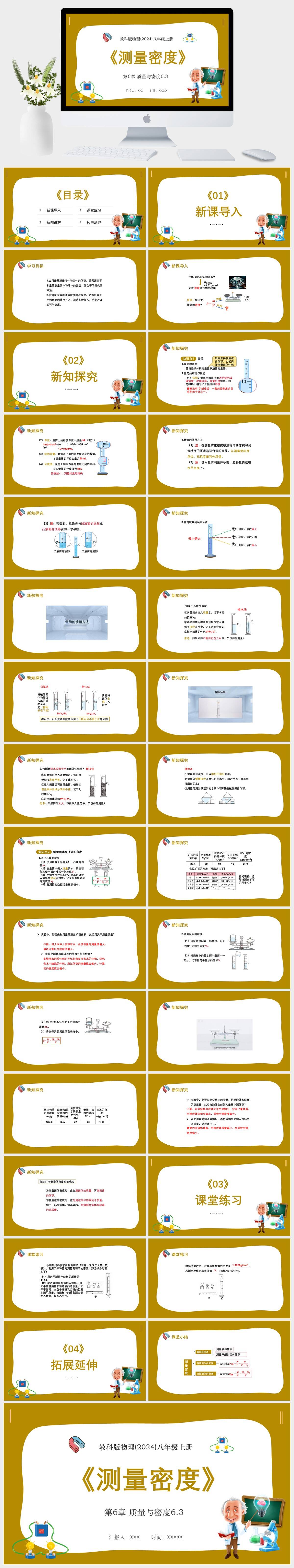HKWL3034-教科版物理(2024)八年级上册第6章 质量与密度6.3测量密度PPT模板成品课件