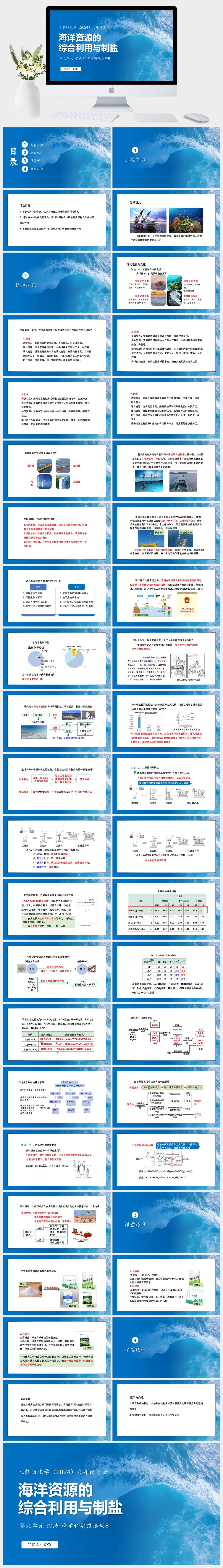 HKHX15-人教版化学(2024)九年级下册第九单元 溶液 跨学科实践活动8 海洋资源的综合利用与制盐PPT模板成品课件