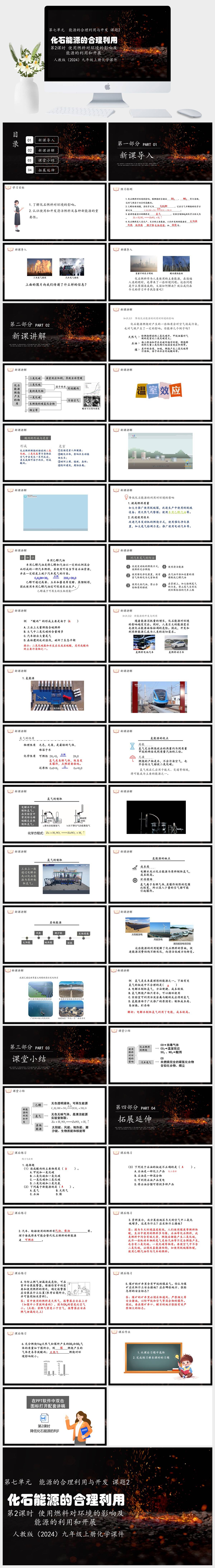 HKHX30-人教版(2024)九年级上册化学第七单元 能源的合理利用与开发 课题2化石能源的合理利用第2课时 使用燃料对环境的影响及能源的利用和开展PPT模板成品课件