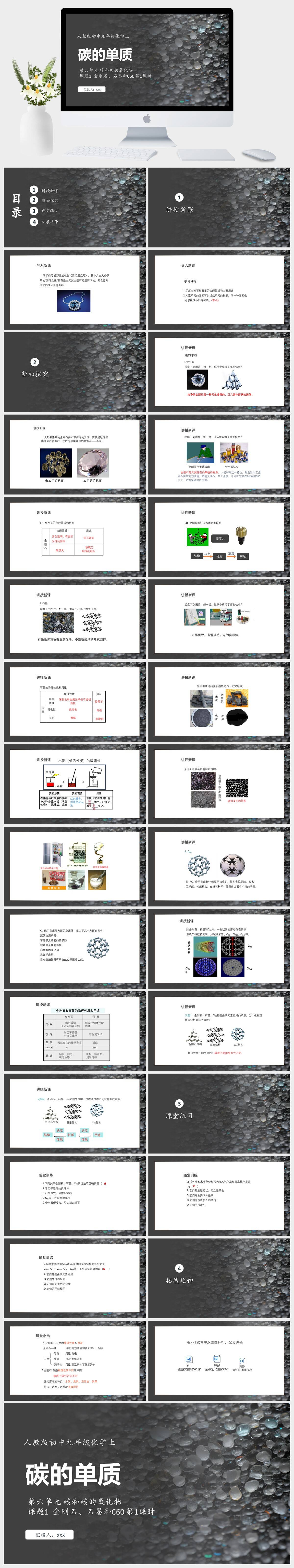 HKHX106-人教版初中九年级化学上第六单元 碳和碳的氧化物 课题1 金刚石、石墨和C60 第1课时 碳的单质PPT模板成品课件