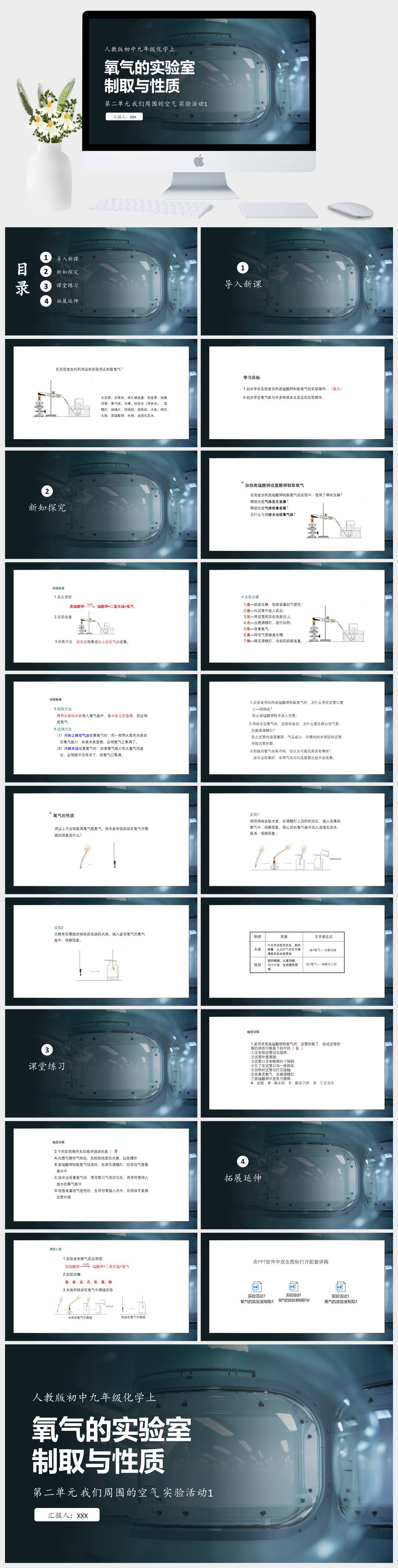 HKHX123-人教版初中九年级化学上第二单元 我们周围的空气 实验活动1 氧气的实验室制取与性质PPT模板成品课件