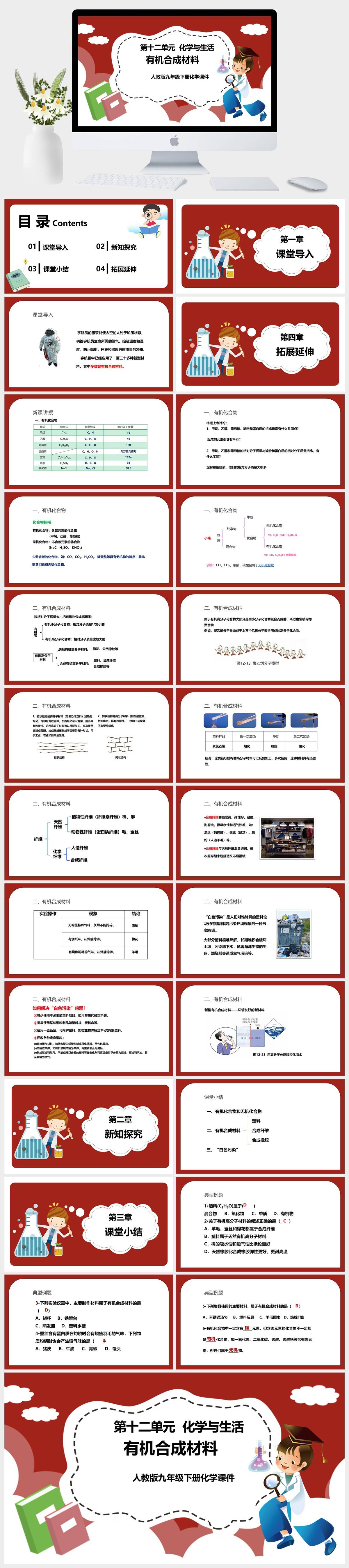 HKHX157-人教版九年级下册化学第十二单元 《化学与生活—有机合成材料》课件PPT模板成品课件