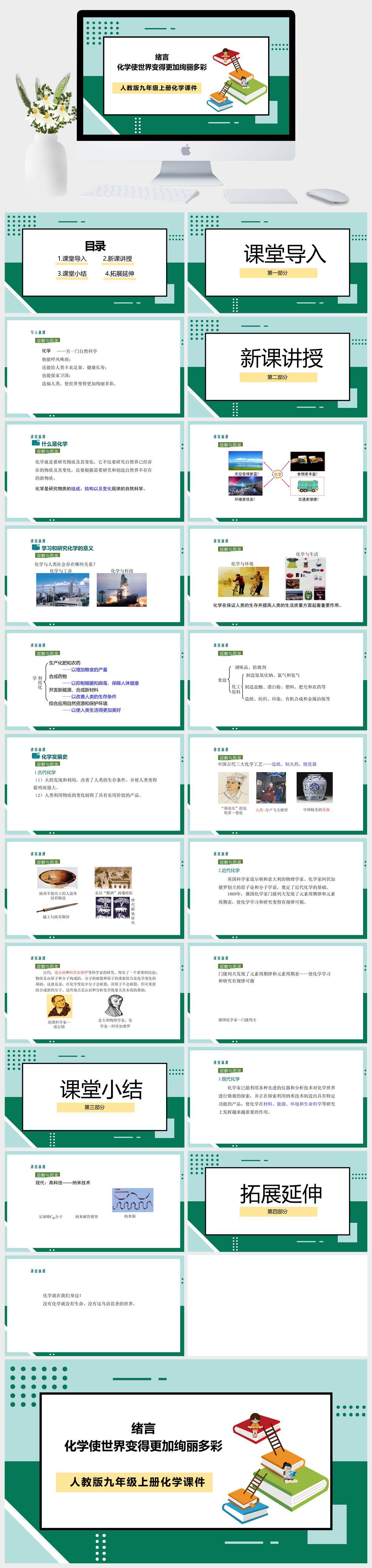 HKHX307-人教版九年级上册化学《化学使世界变得更加绚丽多彩》 课件PPT模板成品课件